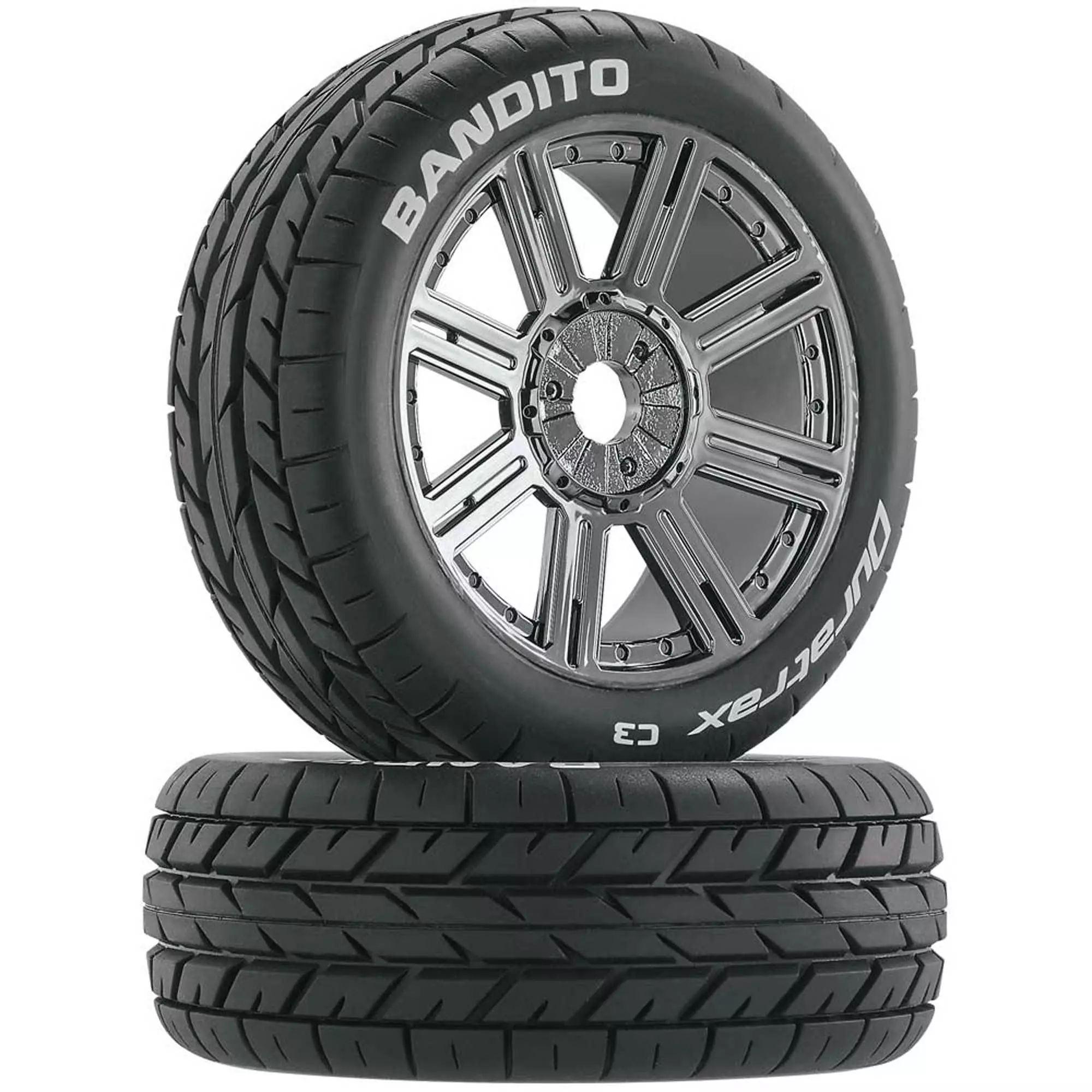 Duratrax Bandito 1/8 Buggy Tire C3 Mounted Spoke Tires, Chrome (2) for Tires & Wheels
