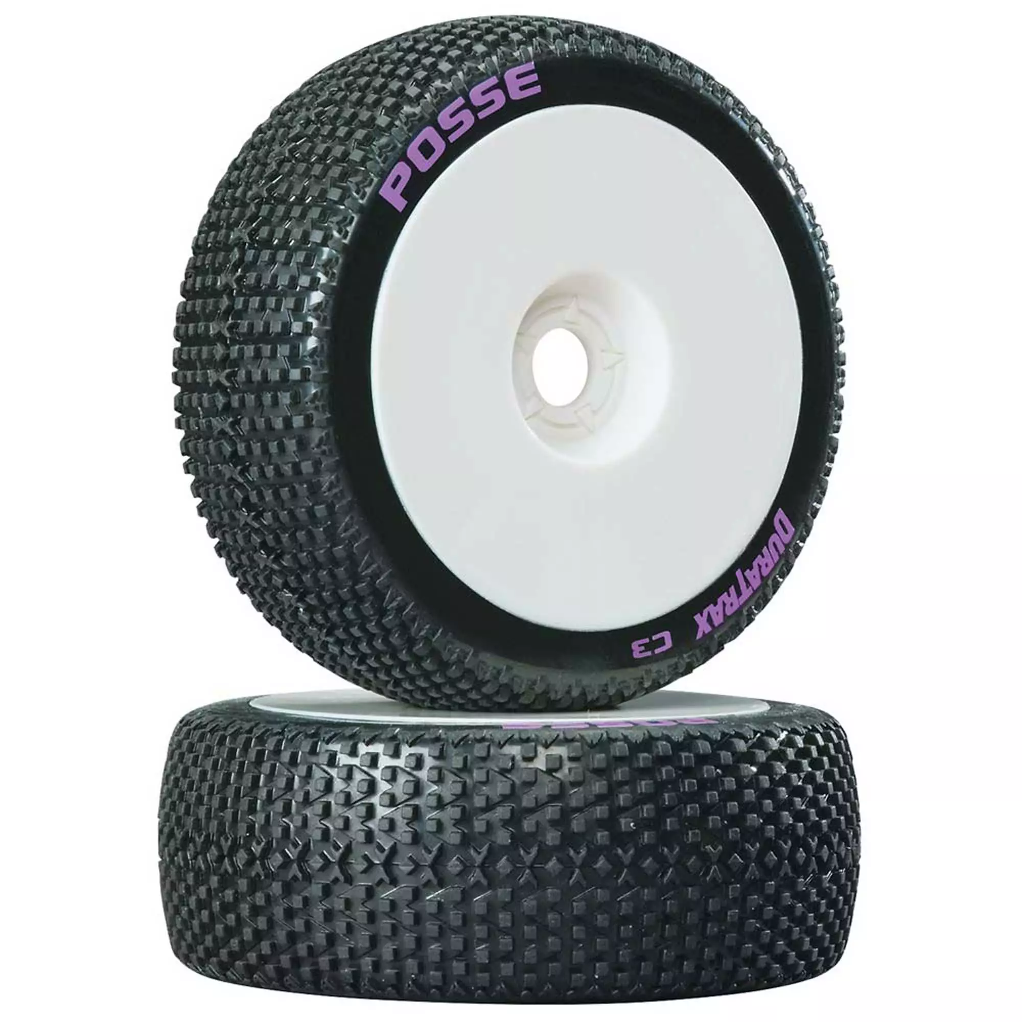 Duratrax Posse 1/8 C3 Mounted Buggy Tires, White (2) for Tires & Wheels